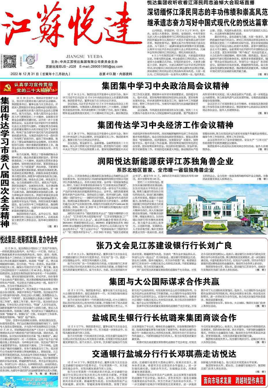 2月17日(农历大年初一)上午,集团党委书记、董事长张乃文看望慰问部分在盐企业一线员工,视频连线海内外部分所属企业干部职工,代表集团党委、董事会、总经理室向春节期间坚守岗位的劳动者致以节日问候和新春祝福。张乃文首先来到悦达仁逸康养中心,与入住老人和一线工作人员亲切交谈,并送上节日慰问品。他详细询问了节日期间安全管理、服务保障和老人生活照料等情况,对大家坚守服务岗位的奉献精神给予高度评价。他强调,要用心用情做好康养服务,不断提升服务质量和专业水平,努力打造让老人安心、子女放心、社会满意的康 ...